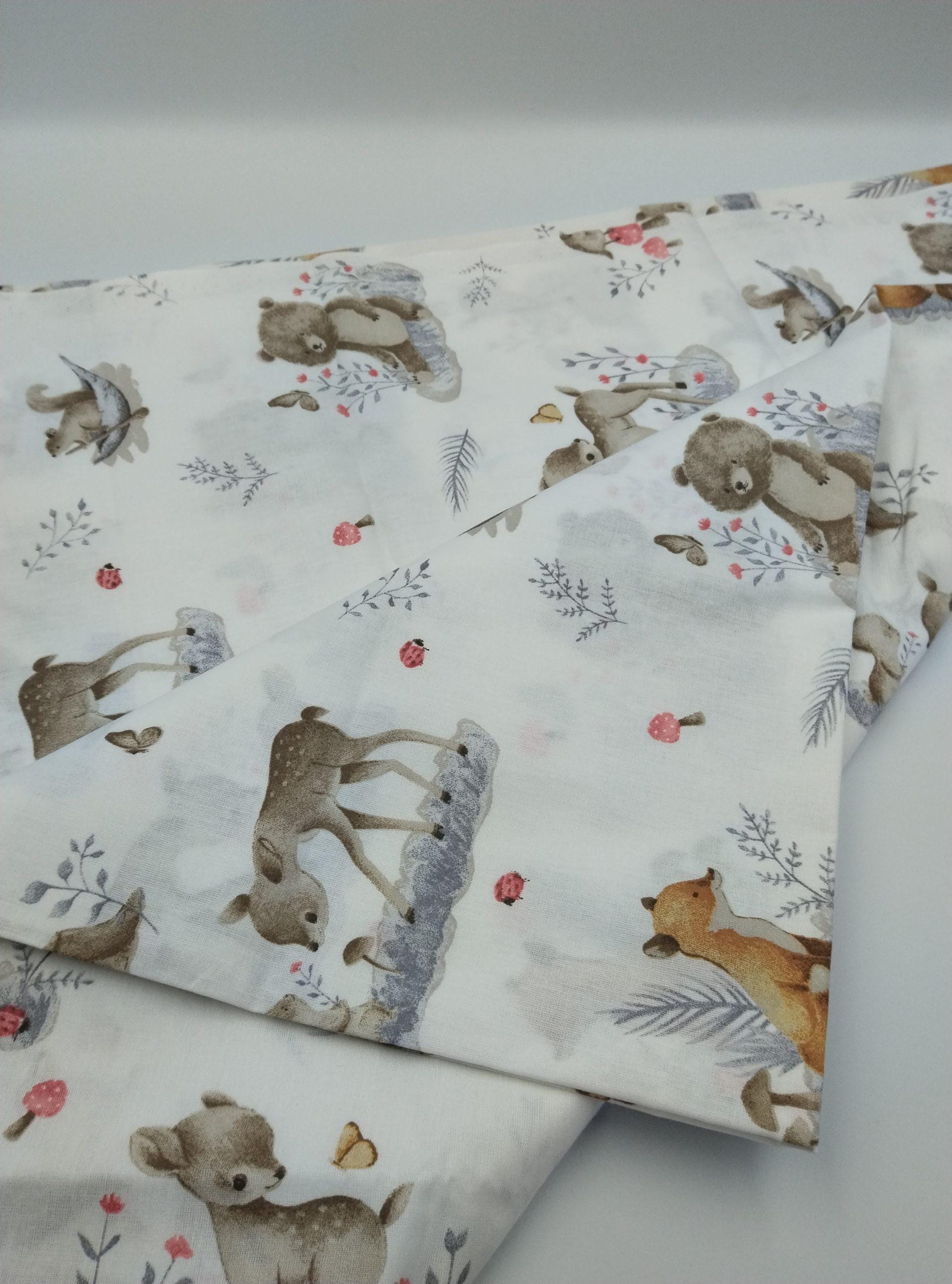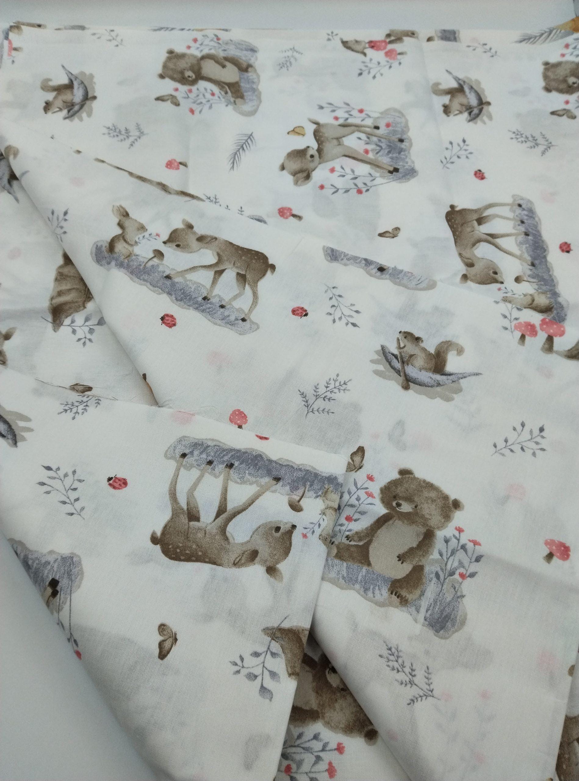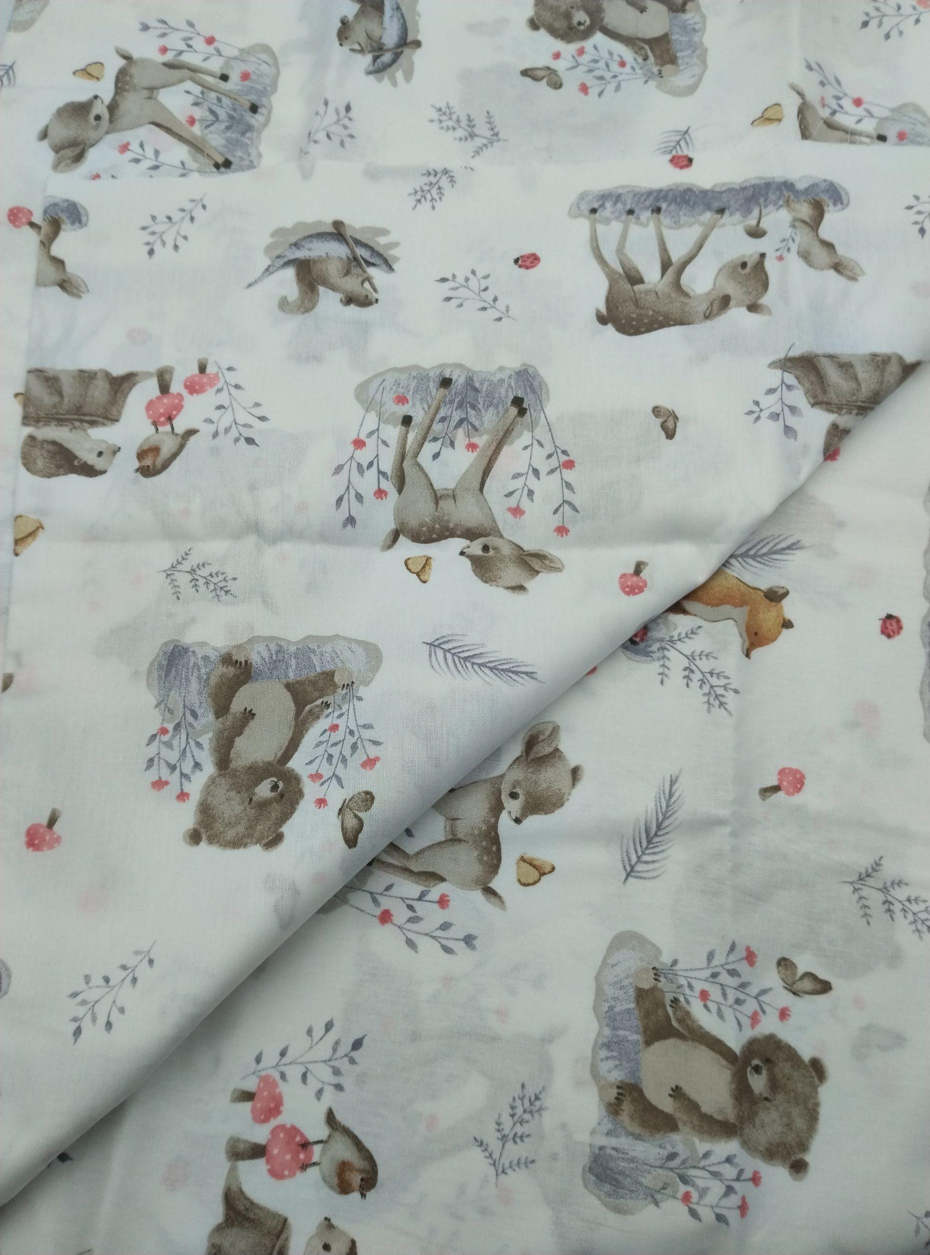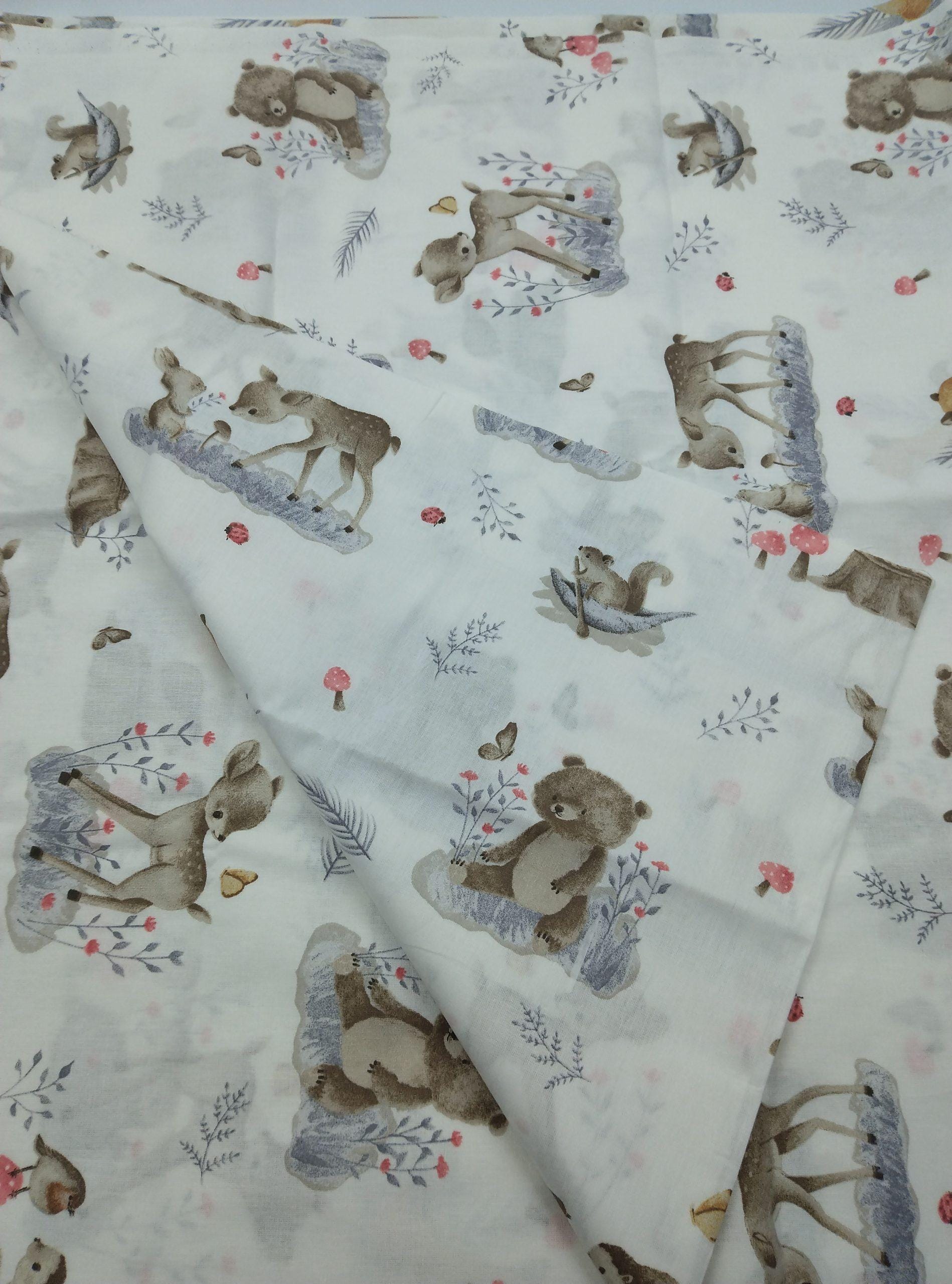 ELNA Kumaş’ın orman hayvanları desenli viskon‑pamuk kumaşı; ayılar, geyikler, tavşanlar gibi sevimli motiflerle süslenmiş, hafif ve nefes alabilen yapısı sayesinde bebek kıyafetleri, elbiseler, bluzlar, etekler ve kreş dekorasyon projeleri için ideal. Yumuşak dokusu cilde dosttur ve dökümlü akışıyla kullanımı kolaydır.