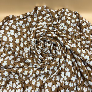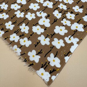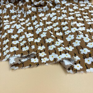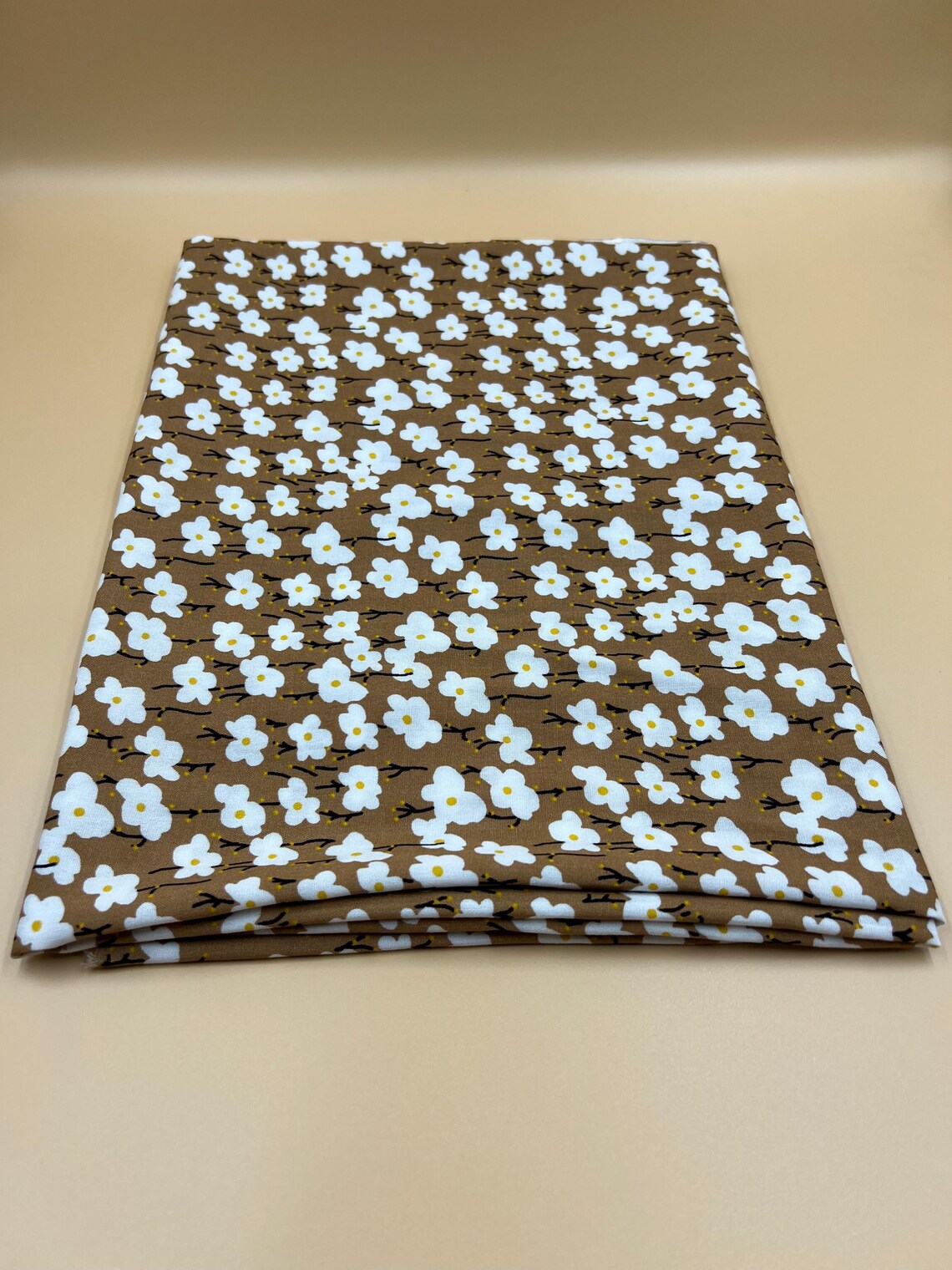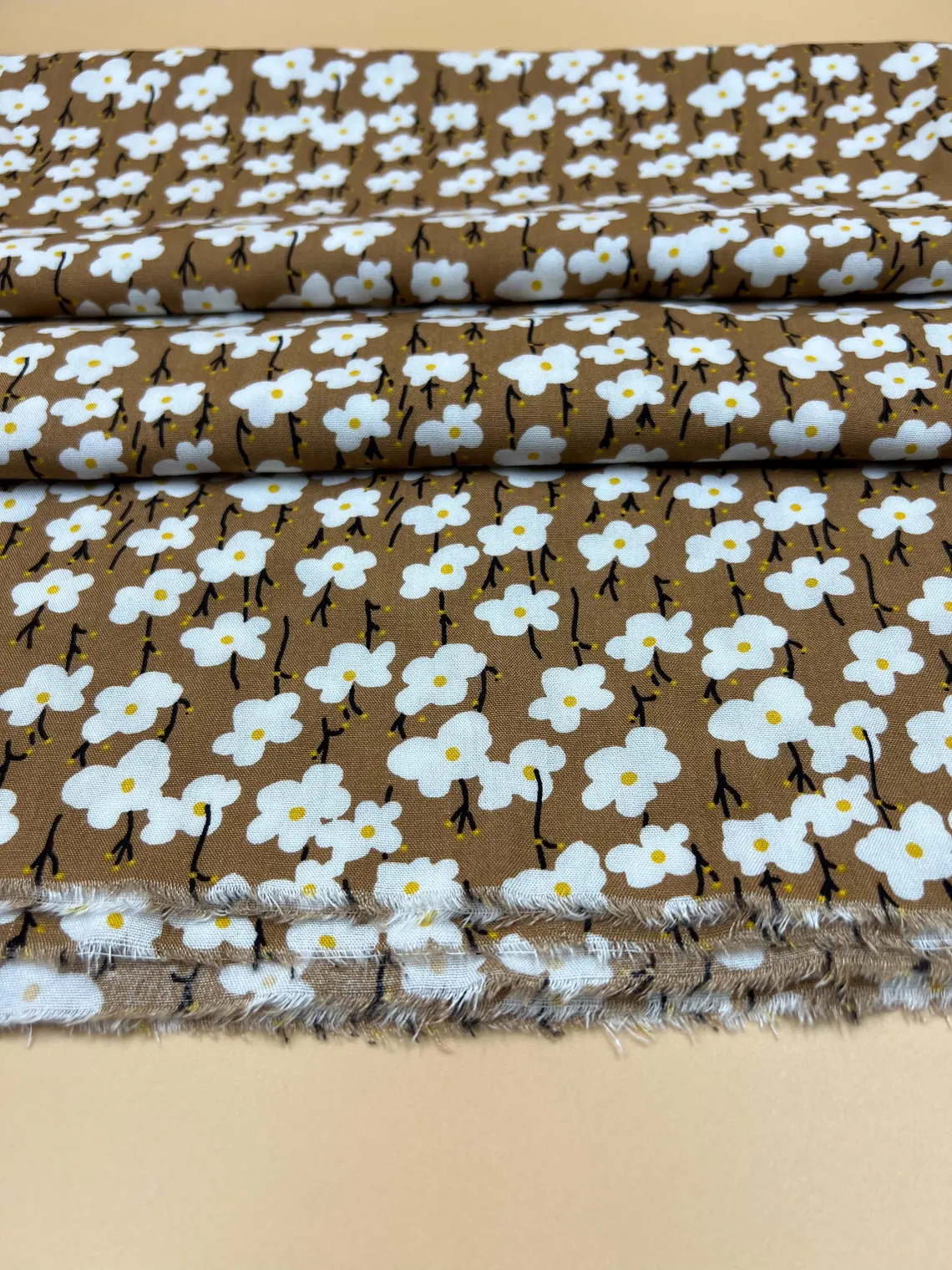 Kahverengi Papatya Bahçesi Desenli Pamuk Viskon Kumaş – Yumuşak, Dökümlü ve Nefes Alan Çiçekli Yazlık Kumaş | 150×100 cm ELNV77